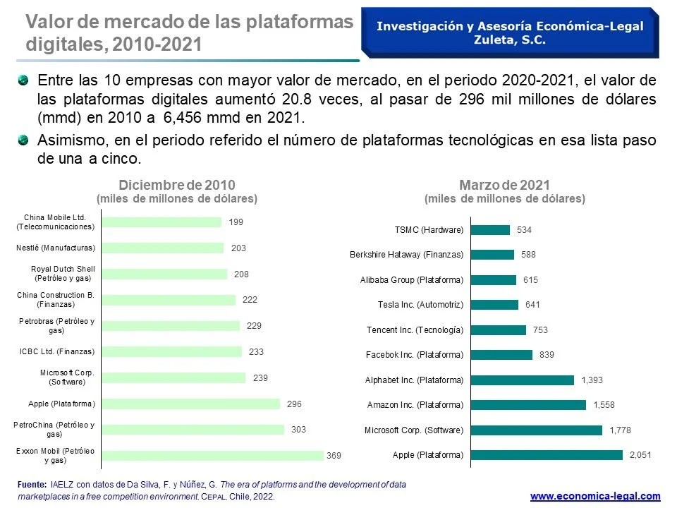Valor de mercado de las plataformas digitales, 2010-2021 Virgilio Zuleta1 de mayo de 2022Plataformas digitales, Valor de mercado Facebook0 Twitter 0 Likes